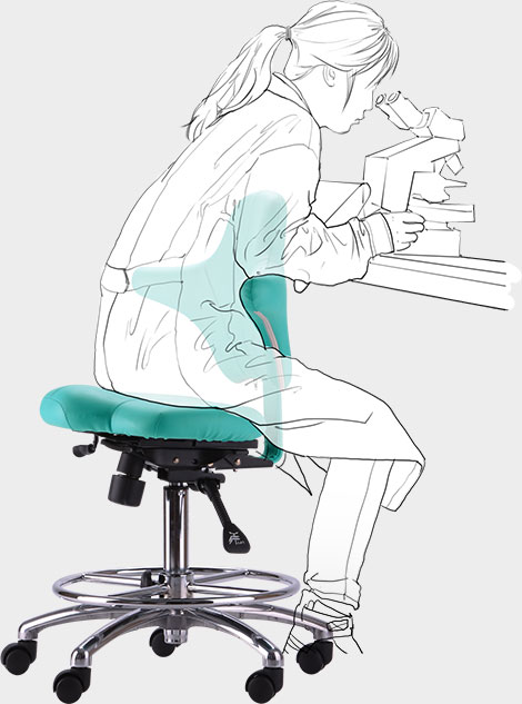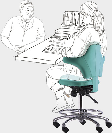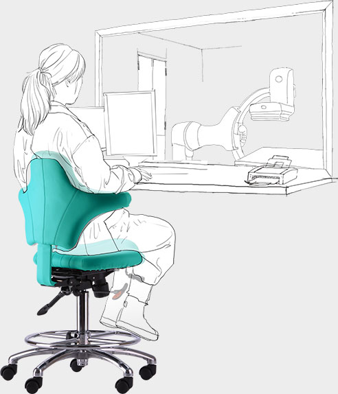 長時間保持坐姿時,可在檢查間歇雙肘放在側(cè)翼扶手上,使手臂和肩部肌肉得到放松,減少疲勞,預(yù)防肩周炎及腕管或肘管綜合征。較長時間單手操作時,可取側(cè)向而坐,工作側(cè)手臂放在側(cè)翼扶手上,使手臂和肩部肌肉得到放松。